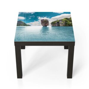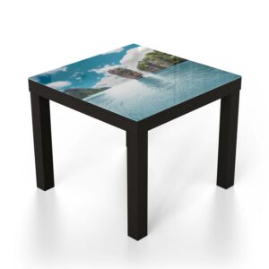 Der Glastisch wird mit einer hochwertigen Drucktechnik gestaltet. Eine bedruckte Folie wird auf die Unterseite der Glasplatte aufgebracht. Dadurch wirken die Drucke sehr brillant und schon fast dreidimensional. Dein Glastisch ist so ein wirkungsvoller Hingucker.