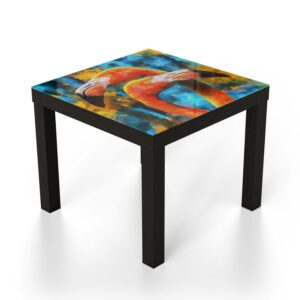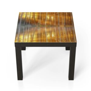 Der Glastisch wird mit einer hochwertigen Drucktechnik gestaltet. Eine bedruckte Folie wird auf die Unterseite der Glasplatte aufgebracht. Dadurch wirken die Drucke sehr brillant und schon fast dreidimensional. Dein Glastisch ist so ein wirkungsvoller Hingucker.