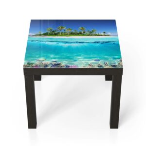 Der Glastisch wird mit einer hochwertigen Drucktechnik gestaltet. Eine bedruckte Folie wird auf die Unterseite der Glasplatte aufgebracht. Dadurch wirken die Drucke sehr brillant und schon fast dreidimensional. Dein Glastisch ist so ein wirkungsvoller Hingucker.