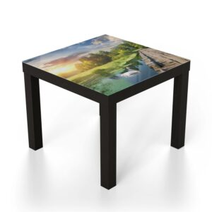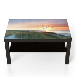 Der Glastisch wird mit einer hochwertigen Drucktechnik gestaltet. Eine bedruckte Folie wird auf die Unterseite der Glasplatte aufgebracht. Dadurch wirken die Drucke sehr brillant und schon fast dreidimensional. Dein Glastisch ist so ein wirkungsvoller Hingucker.