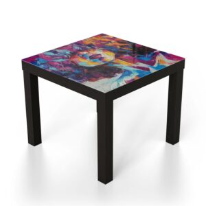 Der Glastisch wird mit einer hochwertigen Drucktechnik gestaltet. Eine bedruckte Folie wird auf die Unterseite der Glasplatte aufgebracht. Dadurch wirken die Drucke sehr brillant und schon fast dreidimensional. Dein Glastisch ist so ein wirkungsvoller Hingucker.