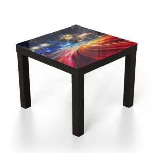 Der Glastisch wird mit einer hochwertigen Drucktechnik gestaltet. Eine bedruckte Folie wird auf die Unterseite der Glasplatte aufgebracht. Dadurch wirken die Drucke sehr brillant und schon fast dreidimensional. Dein Glastisch ist so ein wirkungsvoller Hingucker.