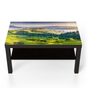 Der Glastisch wird mit einer hochwertigen Drucktechnik gestaltet. Eine bedruckte Folie wird auf die Unterseite der Glasplatte aufgebracht. Dadurch wirken die Drucke sehr brillant und schon fast dreidimensional. Dein Glastisch ist so ein wirkungsvoller Hingucker.