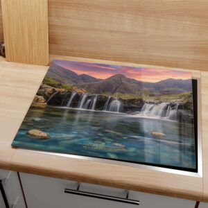Herdabdeckplatte – Wasserfälle im Abendlicht