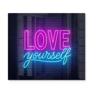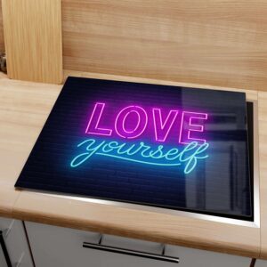 Herdabdeckplatte – Neonschrift Selbstliebe