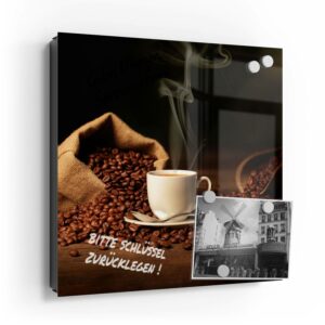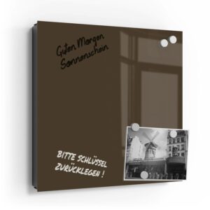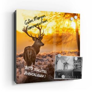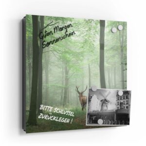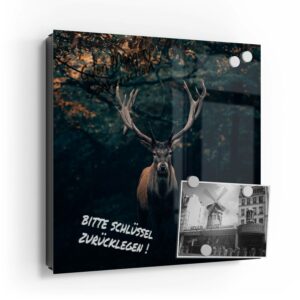 Wer kennt es nicht: Man ist in Eile und der Autoschlüssel ist nicht aufzufinden. Oder er liegt mit vielen anderen Schlüsseln lose und unschön auf der Anrichte. Mit einem Schlüsselkasten erleichterst du dir den Alltag und bringst Ordnung ins Chaos. So ist endlich Schluss mit der Sucherei und dein Flur bleibt aufgeräumt. Im Design Schlüsselkasten finden auch selten genutzte Schlüssel einen Platz und können übersichtlich aufgehängt werden. Zum praktischen Alltagshelfer wird der Schlüsselkasten, da er auch als kleines Notizbrett dient: Er kann einfach mit einem abwischbaren Marker beschrieben werden. Sehr gut sind dafür zum Beispiel Kreidemarker geeignet, mit denen du Botschaften an deine Liebsten hinterlassen kannst oder einfach wichtige Termine notierst. Die Oberfläche des Glases ist äußerst kratz- und schlagfest und damit langlebig, auch wenn der Kasten täglich genutzt wird. Das Glas wird mit einer hochwertig bedruckten Folie versehen, die farbecht ist. Fotos und Kunstwerke wirken damit immer gestochen scharf und durch die Glasoberfläche schon fast dreidimensional. Somit wird der Schlüsselkasten selbst zum Designobjekt.