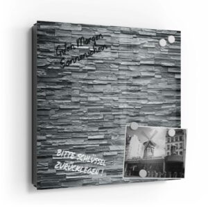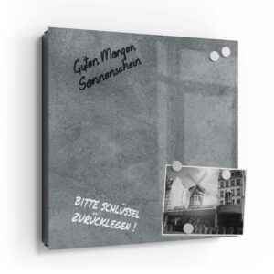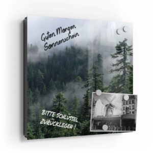 Wer kennt es nicht: Man ist in Eile und der Autoschlüssel ist nicht aufzufinden. Oder er liegt mit vielen anderen Schlüsseln lose und unschön auf der Anrichte. Mit einem Schlüsselkasten erleichterst du dir den Alltag und bringst Ordnung ins Chaos. So ist endlich Schluss mit der Sucherei und dein Flur bleibt aufgeräumt. Im Design Schlüsselkasten finden auch selten genutzte Schlüssel einen Platz und können übersichtlich aufgehängt werden. Zum praktischen Alltagshelfer wird der Schlüsselkasten, da er auch als kleines Notizbrett dient: Er kann einfach mit einem abwischbaren Marker beschrieben werden. Sehr gut sind dafür zum Beispiel Kreidemarker geeignet, mit denen du Botschaften an deine Liebsten hinterlassen kannst oder einfach wichtige Termine notierst. Die Oberfläche des Glases ist äußerst kratz- und schlagfest und damit langlebig, auch wenn der Kasten täglich genutzt wird. Das Glas wird mit einer hochwertig bedruckten Folie versehen, die farbecht ist. Fotos und Kunstwerke wirken damit immer gestochen scharf und durch die Glasoberfläche schon fast dreidimensional. Somit wird der Schlüsselkasten selbst zum Designobjekt.