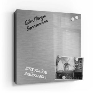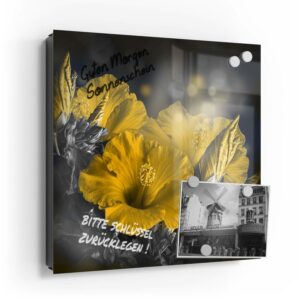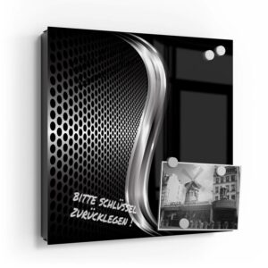 Wer kennt es nicht: Man ist in Eile und der Autoschlüssel ist nicht aufzufinden. Oder er liegt mit vielen anderen Schlüsseln lose und unschön auf der Anrichte. Mit einem Schlüsselkasten erleichterst du dir den Alltag und bringst Ordnung ins Chaos. So ist endlich Schluss mit der Sucherei und dein Flur bleibt aufgeräumt. Im Design Schlüsselkasten finden auch selten genutzte Schlüssel einen Platz und können übersichtlich aufgehängt werden. Zum praktischen Alltagshelfer wird der Schlüsselkasten, da er auch als kleines Notizbrett dient: Er kann einfach mit einem abwischbaren Marker beschrieben werden. Sehr gut sind dafür zum Beispiel Kreidemarker geeignet, mit denen du Botschaften an deine Liebsten hinterlassen kannst oder einfach wichtige Termine notierst. Die Oberfläche des Glases ist äußerst kratz- und schlagfest und damit langlebig, auch wenn der Kasten täglich genutzt wird. Das Glas wird mit einer hochwertig bedruckten Folie versehen, die farbecht ist. Fotos und Kunstwerke wirken damit immer gestochen scharf und durch die Glasoberfläche schon fast dreidimensional. Somit wird der Schlüsselkasten selbst zum Designobjekt.
