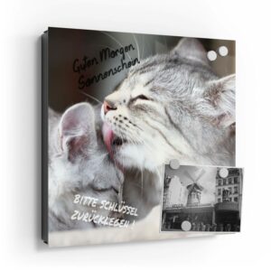 Ein Glas Schlüsselkasten ist modern und so auch ein beliebtes Einzugsgeschenk, zum Beispiel beim Umzug ins eigene Haus oder in die erste eigene Wohnung. Wer etwas Persönliches und Individuelles verschenken möchte, kann hier seiner Fantasie freien Lauf lassen und einen Kasten selbst gestalten. Dabei kann nicht nur ein eigenes Bild gewählt werden, es stehen auch verschiedene Motive und Schriften zur Verfügung, die einfach selbst miteinander kombiniert werden können. Versiehe so den Schlüsselkasten als Geschenk mit einer persönlichen Botschaft und mach ihn damit zu einem einzigartigen Möbelstück.