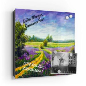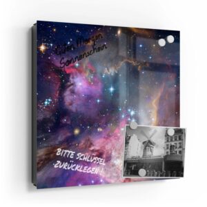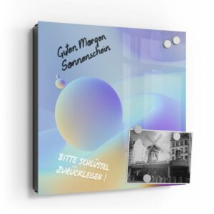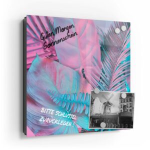 Wer kennt es nicht: Man ist in Eile und der Autoschlüssel ist nicht aufzufinden. Oder er liegt mit vielen anderen Schlüsseln lose und unschön auf der Anrichte. Mit einem Schlüsselkasten erleichterst du dir den Alltag und bringst Ordnung ins Chaos. So ist endlich Schluss mit der Sucherei und dein Flur bleibt aufgeräumt. Im Design Schlüsselkasten finden auch selten genutzte Schlüssel einen Platz und können übersichtlich aufgehängt werden. Zum praktischen Alltagshelfer wird der Schlüsselkasten, da er auch als kleines Notizbrett dient: Er kann einfach mit einem abwischbaren Marker beschrieben werden. Sehr gut sind dafür zum Beispiel Kreidemarker geeignet, mit denen du Botschaften an deine Liebsten hinterlassen kannst oder einfach wichtige Termine notierst. Die Oberfläche des Glases ist äußerst kratz- und schlagfest und damit langlebig, auch wenn der Kasten täglich genutzt wird. Das Glas wird mit einer hochwertig bedruckten Folie versehen, die farbecht ist. Fotos und Kunstwerke wirken damit immer gestochen scharf und durch die Glasoberfläche schon fast dreidimensional. Somit wird der Schlüsselkasten selbst zum Designobjekt.