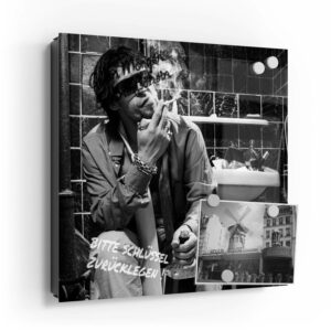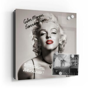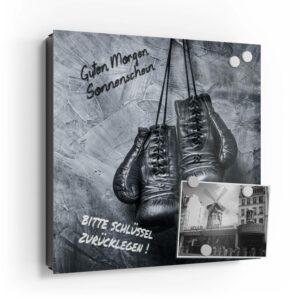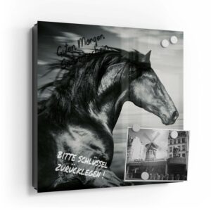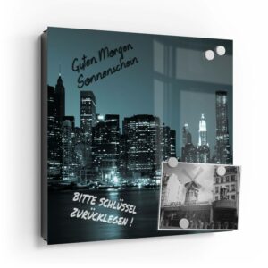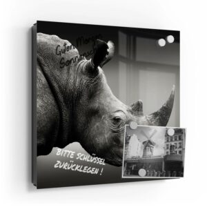 Wer kennt es nicht: Man ist in Eile und der Autoschlüssel ist nicht aufzufinden. Oder er liegt mit vielen anderen Schlüsseln lose und unschön auf der Anrichte. Mit einem Schlüsselkasten erleichterst du dir den Alltag und bringst Ordnung ins Chaos. So ist endlich Schluss mit der Sucherei und dein Flur bleibt aufgeräumt. Im Design Schlüsselkasten finden auch selten genutzte Schlüssel einen Platz und können übersichtlich aufgehängt werden. Zum praktischen Alltagshelfer wird der Schlüsselkasten, da er auch als kleines Notizbrett dient: Er kann einfach mit einem abwischbaren Marker beschrieben werden. Sehr gut sind dafür zum Beispiel Kreidemarker geeignet, mit denen du Botschaften an deine Liebsten hinterlassen kannst oder einfach wichtige Termine notierst. Die Oberfläche des Glases ist äußerst kratz- und schlagfest und damit langlebig, auch wenn der Kasten täglich genutzt wird. Das Glas wird mit einer hochwertig bedruckten Folie versehen, die farbecht ist. Fotos und Kunstwerke wirken damit immer gestochen scharf und durch die Glasoberfläche schon fast dreidimensional. Somit wird der Schlüsselkasten selbst zum Designobjekt.