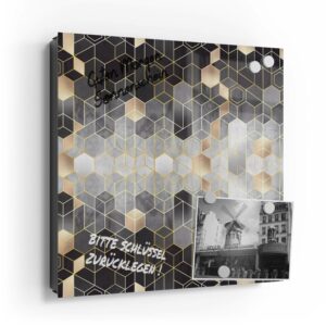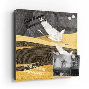 Wer kennt es nicht: Man ist in Eile und der Autoschlüssel ist nicht aufzufinden. Oder er liegt mit vielen anderen Schlüsseln lose und unschön auf der Anrichte. Mit einem Schlüsselkasten erleichterst du dir den Alltag und bringst Ordnung ins Chaos. So ist endlich Schluss mit der Sucherei und dein Flur bleibt aufgeräumt. Im Design Schlüsselkasten finden auch selten genutzte Schlüssel einen Platz und können übersichtlich aufgehängt werden. Zum praktischen Alltagshelfer wird der Schlüsselkasten, da er auch als kleines Notizbrett dient: Er kann einfach mit einem abwischbaren Marker beschrieben werden. Sehr gut sind dafür zum Beispiel Kreidemarker geeignet, mit denen du Botschaften an deine Liebsten hinterlassen kannst oder einfach wichtige Termine notierst. Die Oberfläche des Glases ist äußerst kratz- und schlagfest und damit langlebig, auch wenn der Kasten täglich genutzt wird. Das Glas wird mit einer hochwertig bedruckten Folie versehen, die farbecht ist. Fotos und Kunstwerke wirken damit immer gestochen scharf und durch die Glasoberfläche schon fast dreidimensional. Somit wird der Schlüsselkasten selbst zum Designobjekt.