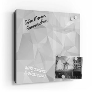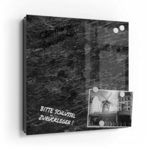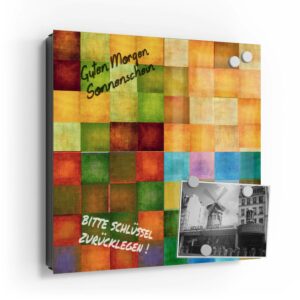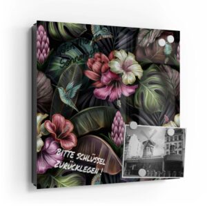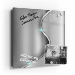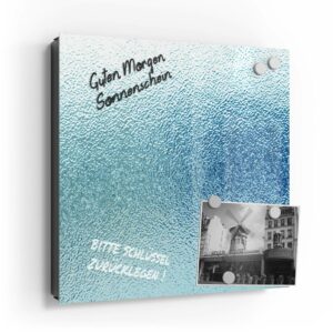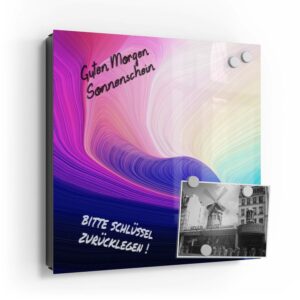 Wer kennt es nicht: Man ist in Eile und der Autoschlüssel ist nicht aufzufinden. Oder er liegt mit vielen anderen Schlüsseln lose und unschön auf der Anrichte. Mit einem Schlüsselkasten erleichterst du dir den Alltag und bringst Ordnung ins Chaos. So ist endlich Schluss mit der Sucherei und dein Flur bleibt aufgeräumt. Im Design Schlüsselkasten finden auch selten genutzte Schlüssel einen Platz und können übersichtlich aufgehängt werden. Zum praktischen Alltagshelfer wird der Schlüsselkasten, da er auch als kleines Notizbrett dient: Er kann einfach mit einem abwischbaren Marker beschrieben werden. Sehr gut sind dafür zum Beispiel Kreidemarker geeignet, mit denen du Botschaften an deine Liebsten hinterlassen kannst oder einfach wichtige Termine notierst. Die Oberfläche des Glases ist äußerst kratz- und schlagfest und damit langlebig, auch wenn der Kasten täglich genutzt wird. Das Glas wird mit einer hochwertig bedruckten Folie versehen, die farbecht ist. Fotos und Kunstwerke wirken damit immer gestochen scharf und durch die Glasoberfläche schon fast dreidimensional. Somit wird der Schlüsselkasten selbst zum Designobjekt.
