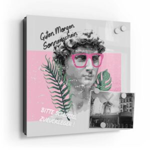 Wer kennt es nicht: Man ist in Eile und der Autoschlüssel ist nicht aufzufinden. Oder er liegt mit vielen anderen Schlüsseln lose und unschön auf der Anrichte. Mit einem Schlüsselkasten erleichterst du dir den Alltag und bringst Ordnung ins Chaos. So ist endlich Schluss mit der Sucherei und dein Flur bleibt aufgeräumt. Im Design Schlüsselkasten finden auch selten genutzte Schlüssel einen Platz und können übersichtlich aufgehängt werden. Zum praktischen Alltagshelfer wird der Schlüsselkasten, da er auch als kleines Notizbrett dient: Er kann einfach mit einem abwischbaren Marker beschrieben werden. Sehr gut sind dafür zum Beispiel Kreidemarker geeignet, mit denen du Botschaften an deine Liebsten hinterlassen kannst oder einfach wichtige Termine notierst. Die Oberfläche des Glases ist äußerst kratz- und schlagfest und damit langlebig, auch wenn der Kasten täglich genutzt wird. Das Glas wird mit einer hochwertig bedruckten Folie versehen, die farbecht ist. Fotos und Kunstwerke wirken damit immer gestochen scharf und durch die Glasoberfläche schon fast dreidimensional. Somit wird der Schlüsselkasten selbst zum Designobjekt.