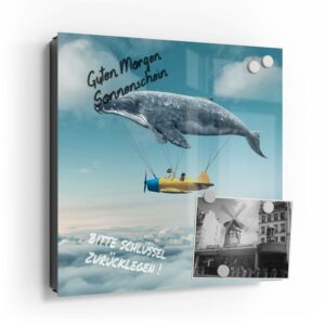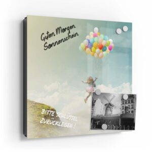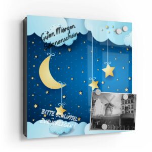 Wer kennt es nicht: Man ist in Eile und der Autoschlüssel ist nicht aufzufinden. Oder er liegt mit vielen anderen Schlüsseln lose und unschön auf der Anrichte. Mit einem Schlüsselkasten erleichterst du dir den Alltag und bringst Ordnung ins Chaos. So ist endlich Schluss mit der Sucherei und dein Flur bleibt aufgeräumt. Im Design Schlüsselkasten finden auch selten genutzte Schlüssel einen Platz und können übersichtlich aufgehängt werden. Zum praktischen Alltagshelfer wird der Schlüsselkasten, da er auch als kleines Notizbrett dient: Er kann einfach mit einem abwischbaren Marker beschrieben werden. Sehr gut sind dafür zum Beispiel Kreidemarker geeignet, mit denen du Botschaften an deine Liebsten hinterlassen kannst oder einfach wichtige Termine notierst. Die Oberfläche des Glases ist äußerst kratz- und schlagfest und damit langlebig, auch wenn der Kasten täglich genutzt wird. Das Glas wird mit einer hochwertig bedruckten Folie versehen, die farbecht ist. Fotos und Kunstwerke wirken damit immer gestochen scharf und durch die Glasoberfläche schon fast dreidimensional. Somit wird der Schlüsselkasten selbst zum Designobjekt.