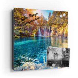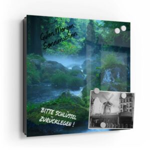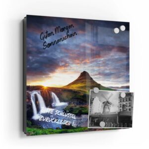 Wer kennt es nicht: Man ist in Eile und der Autoschlüssel ist nicht aufzufinden. Oder er liegt mit vielen anderen Schlüsseln lose und unschön auf der Anrichte. Mit einem Schlüsselkasten erleichterst du dir den Alltag und bringst Ordnung ins Chaos. So ist endlich Schluss mit der Sucherei und dein Flur bleibt aufgeräumt. Im Design Schlüsselkasten finden auch selten genutzte Schlüssel einen Platz und können übersichtlich aufgehängt werden. Zum praktischen Alltagshelfer wird der Schlüsselkasten, da er auch als kleines Notizbrett dient: Er kann einfach mit einem abwischbaren Marker beschrieben werden. Sehr gut sind dafür zum Beispiel Kreidemarker geeignet, mit denen du Botschaften an deine Liebsten hinterlassen kannst oder einfach wichtige Termine notierst. Die Oberfläche des Glases ist äußerst kratz- und schlagfest und damit langlebig, auch wenn der Kasten täglich genutzt wird. Das Glas wird mit einer hochwertig bedruckten Folie versehen, die farbecht ist. Fotos und Kunstwerke wirken damit immer gestochen scharf und durch die Glasoberfläche schon fast dreidimensional. Somit wird der Schlüsselkasten selbst zum Designobjekt.