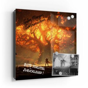 Wer kennt es nicht: Man ist in Eile und der Autoschlüssel ist nicht aufzufinden. Oder er liegt mit vielen anderen Schlüsseln lose und unschön auf der Anrichte. Mit einem Schlüsselkasten erleichterst du dir den Alltag und bringst Ordnung ins Chaos. So ist endlich Schluss mit der Sucherei und dein Flur bleibt aufgeräumt. Im Design Schlüsselkasten finden auch selten genutzte Schlüssel einen Platz und können übersichtlich aufgehängt werden. Zum praktischen Alltagshelfer wird der Schlüsselkasten, da er auch als kleines Notizbrett dient: Er kann einfach mit einem abwischbaren Marker beschrieben werden. Sehr gut sind dafür zum Beispiel Kreidemarker geeignet, mit denen du Botschaften an deine Liebsten hinterlassen kannst oder einfach wichtige Termine notierst. Die Oberfläche des Glases ist äußerst kratz- und schlagfest und damit langlebig, auch wenn der Kasten täglich genutzt wird. Das Glas wird mit einer hochwertig bedruckten Folie versehen, die farbecht ist. Fotos und Kunstwerke wirken damit immer gestochen scharf und durch die Glasoberfläche schon fast dreidimensional. Somit wird der Schlüsselkasten selbst zum Designobjekt.