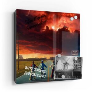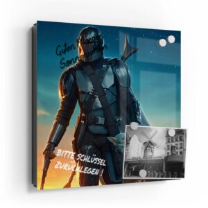 Wer kennt es nicht: Man ist in Eile und der Autoschlüssel ist nicht aufzufinden. Oder er liegt mit vielen anderen Schlüsseln lose und unschön auf der Anrichte. Mit einem Schlüsselkasten erleichterst du dir den Alltag und bringst Ordnung ins Chaos. So ist endlich Schluss mit der Sucherei und dein Flur bleibt aufgeräumt. Im Design Schlüsselkasten finden auch selten genutzte Schlüssel einen Platz und können übersichtlich aufgehängt werden. Zum praktischen Alltagshelfer wird der Schlüsselkasten, da er auch als kleines Notizbrett dient: Er kann einfach mit einem abwischbaren Marker beschrieben werden. Sehr gut sind dafür zum Beispiel Kreidemarker geeignet, mit denen du Botschaften an deine Liebsten hinterlassen kannst oder einfach wichtige Termine notierst. Die Oberfläche des Glases ist äußerst kratz- und schlagfest und damit langlebig, auch wenn der Kasten täglich genutzt wird. Das Glas wird mit einer hochwertig bedruckten Folie versehen, die farbecht ist. Fotos und Kunstwerke wirken damit immer gestochen scharf und durch die Glasoberfläche schon fast dreidimensional. Somit wird der Schlüsselkasten selbst zum Designobjekt.