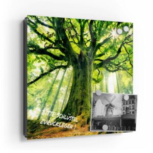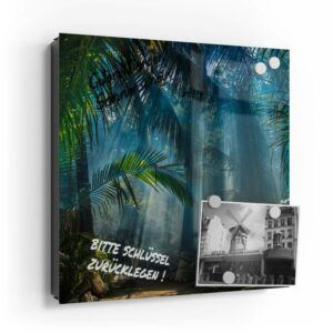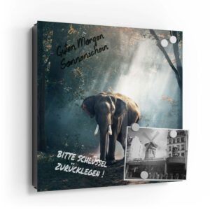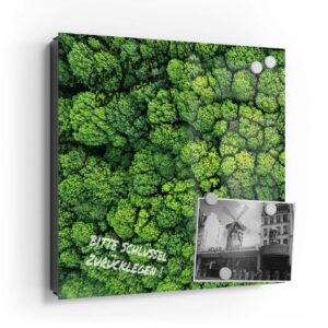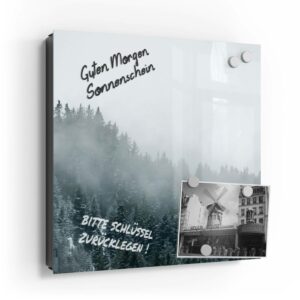Wer kennt es nicht: Man ist in Eile und der Autoschlüssel ist nicht aufzufinden. Oder er liegt mit vielen anderen Schlüsseln lose und unschön auf der Anrichte. Mit einem Schlüsselkasten erleichterst du dir den Alltag und bringst Ordnung ins Chaos. So ist endlich Schluss mit der Sucherei und dein Flur bleibt aufgeräumt. Im Design Schlüsselkasten finden auch selten genutzte Schlüssel einen Platz und können übersichtlich aufgehängt werden. Zum praktischen Alltagshelfer wird der Schlüsselkasten, da er auch als kleines Notizbrett dient: Er kann einfach mit einem abwischbaren Marker beschrieben werden. Sehr gut sind dafür zum Beispiel Kreidemarker geeignet, mit denen du Botschaften an deine Liebsten hinterlassen kannst oder einfach wichtige Termine notierst. Die Oberfläche des Glases ist äußerst kratz- und schlagfest und damit langlebig, auch wenn der Kasten täglich genutzt wird. Das Glas wird mit einer hochwertig bedruckten Folie versehen, die farbecht ist. Fotos und Kunstwerke wirken damit immer gestochen scharf und durch die Glasoberfläche schon fast dreidimensional. Somit wird der Schlüsselkasten selbst zum Designobjekt.