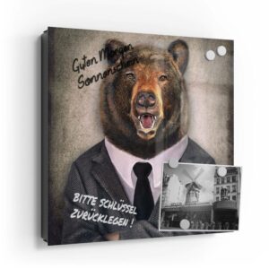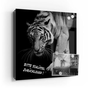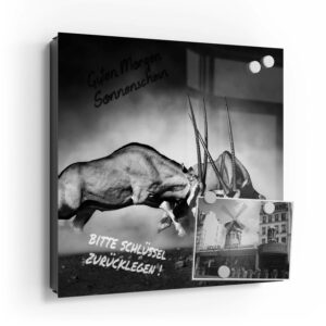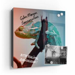 Wer kennt es nicht: Man ist in Eile und der Autoschlüssel ist nicht aufzufinden. Oder er liegt mit vielen anderen Schlüsseln lose und unschön auf der Anrichte. Mit einem Schlüsselkasten erleichterst du dir den Alltag und bringst Ordnung ins Chaos. So ist endlich Schluss mit der Sucherei und dein Flur bleibt aufgeräumt. Im Design Schlüsselkasten finden auch selten genutzte Schlüssel einen Platz und können übersichtlich aufgehängt werden. Zum praktischen Alltagshelfer wird der Schlüsselkasten, da er auch als kleines Notizbrett dient: Er kann einfach mit einem abwischbaren Marker beschrieben werden. Sehr gut sind dafür zum Beispiel Kreidemarker geeignet, mit denen du Botschaften an deine Liebsten hinterlassen kannst oder einfach wichtige Termine notierst. Die Oberfläche des Glases ist äußerst kratz- und schlagfest und damit langlebig, auch wenn der Kasten täglich genutzt wird. Das Glas wird mit einer hochwertig bedruckten Folie versehen, die farbecht ist. Fotos und Kunstwerke wirken damit immer gestochen scharf und durch die Glasoberfläche schon fast dreidimensional. Somit wird der Schlüsselkasten selbst zum Designobjekt.