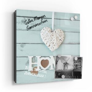 Wer kennt es nicht: Man ist in Eile und der Autoschlüssel ist nicht aufzufinden. Oder er liegt mit vielen anderen Schlüsseln lose und unschön auf der Anrichte. Mit einem Schlüsselkasten erleichterst du dir den Alltag und bringst Ordnung ins Chaos. So ist endlich Schluss mit der Sucherei und dein Flur bleibt aufgeräumt. Im Design Schlüsselkasten finden auch selten genutzte Schlüssel einen Platz und können übersichtlich aufgehängt werden. Zum praktischen Alltagshelfer wird der Schlüsselkasten, da er auch als kleines Notizbrett dient: Er kann einfach mit einem abwischbaren Marker beschrieben werden. Sehr gut sind dafür zum Beispiel Kreidemarker geeignet, mit denen du Botschaften an deine Liebsten hinterlassen kannst oder einfach wichtige Termine notierst. Die Oberfläche des Glases ist äußerst kratz- und schlagfest und damit langlebig, auch wenn der Kasten täglich genutzt wird. Das Glas wird mit einer hochwertig bedruckten Folie versehen, die farbecht ist. Fotos und Kunstwerke wirken damit immer gestochen scharf und durch die Glasoberfläche schon fast dreidimensional. Somit wird der Schlüsselkasten selbst zum Designobjekt.