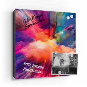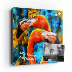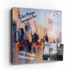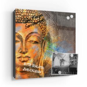 Wer kennt es nicht: Man ist in Eile und der Autoschlüssel ist nicht aufzufinden. Oder er liegt mit vielen anderen Schlüsseln lose und unschön auf der Anrichte. Mit einem Schlüsselkasten erleichterst du dir den Alltag und bringst Ordnung ins Chaos. So ist endlich Schluss mit der Sucherei und dein Flur bleibt aufgeräumt. Im Design Schlüsselkasten finden auch selten genutzte Schlüssel einen Platz und können übersichtlich aufgehängt werden. Zum praktischen Alltagshelfer wird der Schlüsselkasten, da er auch als kleines Notizbrett dient: Er kann einfach mit einem abwischbaren Marker beschrieben werden. Sehr gut sind dafür zum Beispiel Kreidemarker geeignet, mit denen du Botschaften an deine Liebsten hinterlassen kannst oder einfach wichtige Termine notierst. Die Oberfläche des Glases ist äußerst kratz- und schlagfest und damit langlebig, auch wenn der Kasten täglich genutzt wird. Das Glas wird mit einer hochwertig bedruckten Folie versehen, die farbecht ist. Fotos und Kunstwerke wirken damit immer gestochen scharf und durch die Glasoberfläche schon fast dreidimensional. Somit wird der Schlüsselkasten selbst zum Designobjekt.
