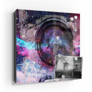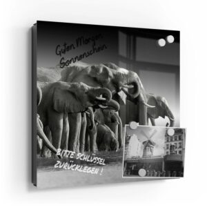 Wer kennt es nicht: Man ist in Eile und der Autoschlüssel ist nicht aufzufinden. Oder er liegt mit vielen anderen Schlüsseln lose und unschön auf der Anrichte. Mit einem Schlüsselkasten erleichterst du dir den Alltag und bringst Ordnung ins Chaos. So ist endlich Schluss mit der Sucherei und dein Flur bleibt aufgeräumt. Im Design Schlüsselkasten finden auch selten genutzte Schlüssel einen Platz und können übersichtlich aufgehängt werden. Zum praktischen Alltagshelfer wird der Schlüsselkasten, da er auch als kleines Notizbrett dient: Er kann einfach mit einem abwischbaren Marker beschrieben werden. Sehr gut sind dafür zum Beispiel Kreidemarker geeignet, mit denen du Botschaften an deine Liebsten hinterlassen kannst oder einfach wichtige Termine notierst. Die Oberfläche des Glases ist äußerst kratz- und schlagfest und damit langlebig, auch wenn der Kasten täglich genutzt wird. Das Glas wird mit einer hochwertig bedruckten Folie versehen, die farbecht ist. Fotos und Kunstwerke wirken damit immer gestochen scharf und durch die Glasoberfläche schon fast dreidimensional. Somit wird der Schlüsselkasten selbst zum Designobjekt.