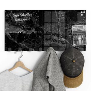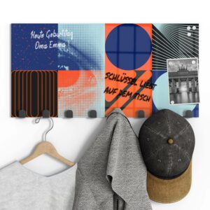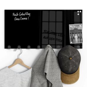 Gerade einfarbige oder ruhig gemusterte Garderoben mit Motiv eignen sich wunderbar, um sie gleichzeitig als kleine Pinn- und Notizwand zu nutzen. Mit einem abwischbaren Marker kannst du deinen Lieben Botschaften hinterlassen, wichtige Daten notieren oder dir einfach ein Motto ausdenken, das du je nach Jahreszeit und Anlass erneuerst. Da sich auf der Rückseite eine Metalloberfläche befindet, kannst du die Garderobenpaneele mit starken Magneten (Neodym-Magneten) auch dazu verwenden, hier Fotos und Notizen anzupinnen. Diese Zusatzfunktion ist nicht nur für Familien eine tolle Möglichkeit, begrenzten Wohnraum zu nutzen und den Alltag strukturieren. Egal ob beim Heimkommen oder beim Ausgehen – hier wirst du an alles Wichtige erinnert, was du noch zu erledigen hast.