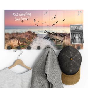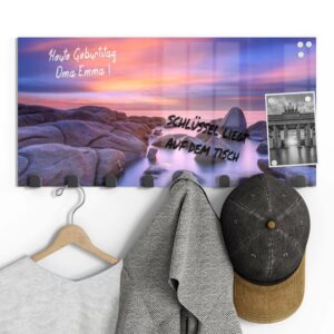 Gerade einfarbige oder ruhig gemusterte Garderoben mit Motiv eignen sich wunderbar, um sie gleichzeitig als kleine Pinn- und Notizwand zu nutzen. Mit einem abwischbaren Marker kannst du deinen Lieben Botschaften hinterlassen, wichtige Daten notieren oder dir einfach ein Motto ausdenken, das du je nach Jahreszeit und Anlass erneuerst. Da sich auf der Rückseite eine Metalloberfläche befindet, kannst du die Garderobenpaneele mit starken Magneten (Neodym-Magneten) auch dazu verwenden, hier Fotos und Notizen anzupinnen. Diese Zusatzfunktion ist nicht nur für Familien eine tolle Möglichkeit, begrenzten Wohnraum zu nutzen und den Alltag strukturieren. Egal ob beim Heimkommen oder beim Ausgehen – hier wirst du an alles Wichtige erinnert, was du noch zu erledigen hast.