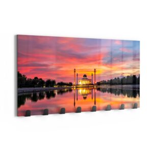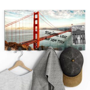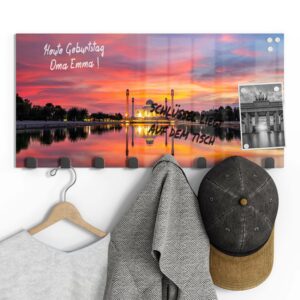 Die Garderobenpaneele bei DEQORI werden aus einem hochwertigen Sicherheitsglas hergestellt, das rückseitig mit einer bedruckten Folie versehen ist. Durch die moderne Drucktechnik ist es möglich, jedes Motiv und Foto in einzigartig guter Qualität abzubilden. Dadurch wirken Fotos dreidimensional und die Farben sind besonders strahlend und brillant. Die Garderobe aus Glas verfügt natürlich über mehrere formschöne Haken, an denen deine Jacken, Mäntel und dein Schirm ihren Platz finden. Die Wandgarderobe mit Edelstahl Details fügt sich gerade in zeitlos eingerichtete Räume gut ein und kann, je nach Motiv, immer passend zur eigenen Dekoration abgestimmt werden. Das moderne Garderobenpaneel wird mit der passenden Wandverankerung geliefert, die dir das schnelle und einfache Anbringen an die Wand ermöglichen und selbst für ungeübte Handwerker kein Problem darstellen. Selbstverständlich sind die Kanten der Glasplatte abgerundet und sorgfältig abgeschliffen. Die Garderobe wird elegant mit einem kleinen Abstand von der Wand angebracht, was sie fast schwerelos erscheinen lässt. Über dem Bereich mit den Garderobenhaken ist das Motiv auch dann noch gut zu erkennen, wenn die Garderobe in Benutzung ist. So ist die Design Wandgarderobe ein tolles Wohnaccessoire, das wie ein Wandbild funktioniert. Gerade für kleine Flure eignet sie sich, um etwas Farbe in die Bude zu bekommen und das Nützliche mit dem Schönen zu verbinden. Die Wandpaneele wird nach deiner Bestellung extra für dich angefertigt und dir in wenigen Tagen zugesandt.