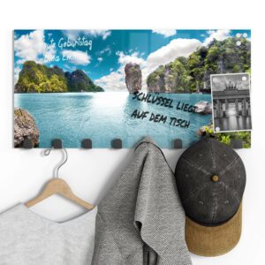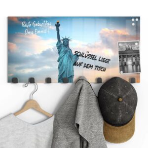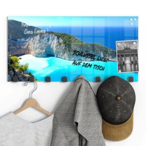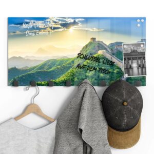 Gerade einfarbige oder ruhig gemusterte Garderoben mit Motiv eignen sich wunderbar, um sie gleichzeitig als kleine Pinn- und Notizwand zu nutzen. Mit einem abwischbaren Marker kannst du deinen Lieben Botschaften hinterlassen, wichtige Daten notieren oder dir einfach ein Motto ausdenken, das du je nach Jahreszeit und Anlass erneuerst. Da sich auf der Rückseite eine Metalloberfläche befindet, kannst du die Garderobenpaneele mit starken Magneten (Neodym-Magneten) auch dazu verwenden, hier Fotos und Notizen anzupinnen. Diese Zusatzfunktion ist nicht nur für Familien eine tolle Möglichkeit, begrenzten Wohnraum zu nutzen und den Alltag strukturieren. Egal ob beim Heimkommen oder beim Ausgehen – hier wirst du an alles Wichtige erinnert, was du noch zu erledigen hast.