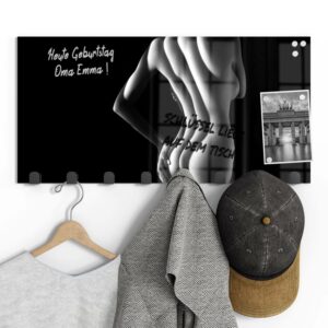 Gerade einfarbige oder ruhig gemusterte Garderoben mit Motiv eignen sich wunderbar, um sie gleichzeitig als kleine Pinn- und Notizwand zu nutzen. Mit einem abwischbaren Marker kannst du deinen Lieben Botschaften hinterlassen, wichtige Daten notieren oder dir einfach ein Motto ausdenken, das du je nach Jahreszeit und Anlass erneuerst. Da sich auf der Rückseite eine Metalloberfläche befindet, kannst du die Garderobenpaneele mit starken Magneten (Neodym-Magneten) auch dazu verwenden, hier Fotos und Notizen anzupinnen. Diese Zusatzfunktion ist nicht nur für Familien eine tolle Möglichkeit, begrenzten Wohnraum zu nutzen und den Alltag strukturieren. Egal ob beim Heimkommen oder beim Ausgehen – hier wirst du an alles Wichtige erinnert, was du noch zu erledigen hast.