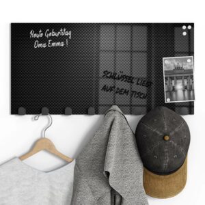 Gerade einfarbige oder ruhig gemusterte Garderoben mit Motiv eignen sich wunderbar, um sie gleichzeitig als kleine Pinn- und Notizwand zu nutzen. Mit einem abwischbaren Marker kannst du deinen Lieben Botschaften hinterlassen, wichtige Daten notieren oder dir einfach ein Motto ausdenken, das du je nach Jahreszeit und Anlass erneuerst. Da sich auf der Rückseite eine Metalloberfläche befindet, kannst du die Garderobenpaneele mit starken Magneten (Neodym-Magneten) auch dazu verwenden, hier Fotos und Notizen anzupinnen. Diese Zusatzfunktion ist nicht nur für Familien eine tolle Möglichkeit, begrenzten Wohnraum zu nutzen und den Alltag strukturieren. Egal ob beim Heimkommen oder beim Ausgehen – hier wirst du an alles Wichtige erinnert, was du noch zu erledigen hast.
