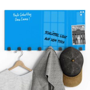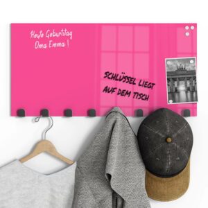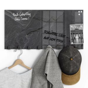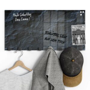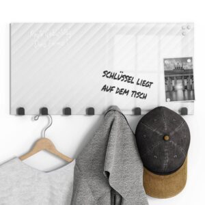 Gerade einfarbige oder ruhig gemusterte Garderoben mit Motiv eignen sich wunderbar, um sie gleichzeitig als kleine Pinn- und Notizwand zu nutzen. Mit einem abwischbaren Marker kannst du deinen Lieben Botschaften hinterlassen, wichtige Daten notieren oder dir einfach ein Motto ausdenken, das du je nach Jahreszeit und Anlass erneuerst. Da sich auf der Rückseite eine Metalloberfläche befindet, kannst du die Garderobenpaneele mit starken Magneten (Neodym-Magneten) auch dazu verwenden, hier Fotos und Notizen anzupinnen. Diese Zusatzfunktion ist nicht nur für Familien eine tolle Möglichkeit, begrenzten Wohnraum zu nutzen und den Alltag strukturieren. Egal ob beim Heimkommen oder beim Ausgehen – hier wirst du an alles Wichtige erinnert, was du noch zu erledigen hast.