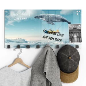 Gerade einfarbige oder ruhig gemusterte Garderoben mit Motiv eignen sich wunderbar, um sie gleichzeitig als kleine Pinn- und Notizwand zu nutzen. Mit einem abwischbaren Marker kannst du deinen Lieben Botschaften hinterlassen, wichtige Daten notieren oder dir einfach ein Motto ausdenken, das du je nach Jahreszeit und Anlass erneuerst. Da sich auf der Rückseite eine Metalloberfläche befindet, kannst du die Garderobenpaneele mit starken Magneten (Neodym-Magneten) auch dazu verwenden, hier Fotos und Notizen anzupinnen. Diese Zusatzfunktion ist nicht nur für Familien eine tolle Möglichkeit, begrenzten Wohnraum zu nutzen und den Alltag strukturieren. Egal ob beim Heimkommen oder beim Ausgehen – hier wirst du an alles Wichtige erinnert, was du noch zu erledigen hast.