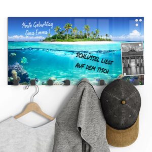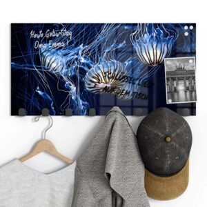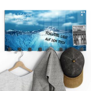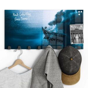 Gerade einfarbige oder ruhig gemusterte Garderoben mit Motiv eignen sich wunderbar, um sie gleichzeitig als kleine Pinn- und Notizwand zu nutzen. Mit einem abwischbaren Marker kannst du deinen Lieben Botschaften hinterlassen, wichtige Daten notieren oder dir einfach ein Motto ausdenken, das du je nach Jahreszeit und Anlass erneuerst. Da sich auf der Rückseite eine Metalloberfläche befindet, kannst du die Garderobenpaneele mit starken Magneten (Neodym-Magneten) auch dazu verwenden, hier Fotos und Notizen anzupinnen. Diese Zusatzfunktion ist nicht nur für Familien eine tolle Möglichkeit, begrenzten Wohnraum zu nutzen und den Alltag strukturieren. Egal ob beim Heimkommen oder beim Ausgehen – hier wirst du an alles Wichtige erinnert, was du noch zu erledigen hast.