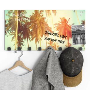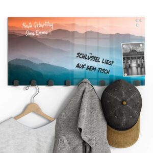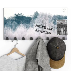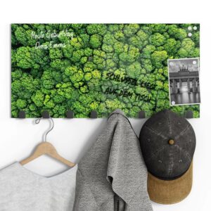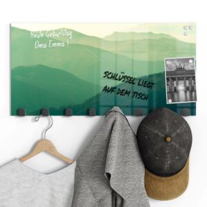 Gerade einfarbige oder ruhig gemusterte Garderoben mit Motiv eignen sich wunderbar, um sie gleichzeitig als kleine Pinn- und Notizwand zu nutzen. Mit einem abwischbaren Marker kannst du deinen Lieben Botschaften hinterlassen, wichtige Daten notieren oder dir einfach ein Motto ausdenken, das du je nach Jahreszeit und Anlass erneuerst. Da sich auf der Rückseite eine Metalloberfläche befindet, kannst du die Garderobenpaneele mit starken Magneten (Neodym-Magneten) auch dazu verwenden, hier Fotos und Notizen anzupinnen. Diese Zusatzfunktion ist nicht nur für Familien eine tolle Möglichkeit, begrenzten Wohnraum zu nutzen und den Alltag strukturieren. Egal ob beim Heimkommen oder beim Ausgehen – hier wirst du an alles Wichtige erinnert, was du noch zu erledigen hast.