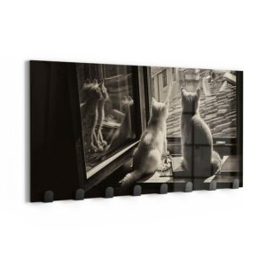 Kleiderhaken – Katzen auf Fensterbrett