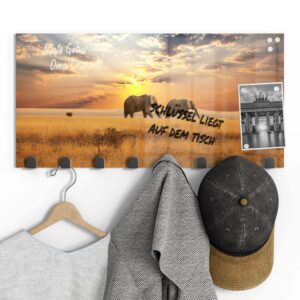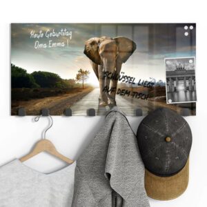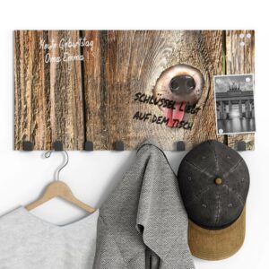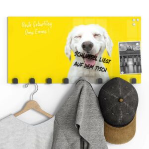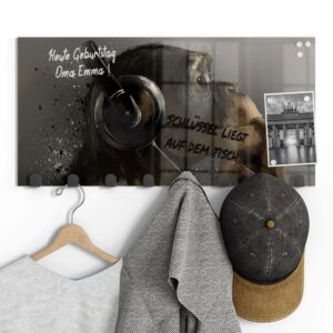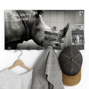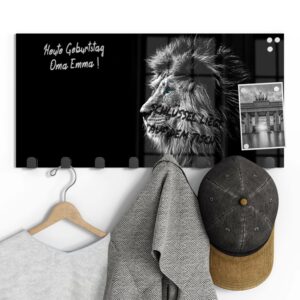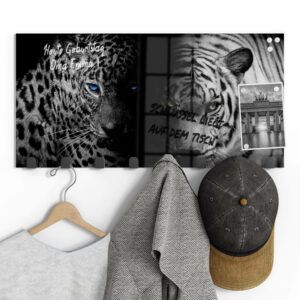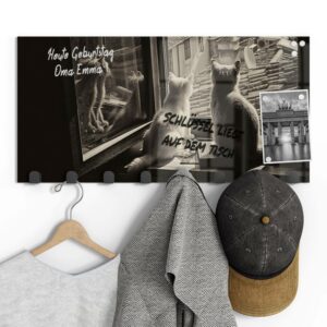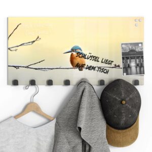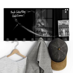Gerade einfarbige oder ruhig gemusterte Garderoben mit Motiv eignen sich wunderbar, um sie gleichzeitig als kleine Pinn- und Notizwand zu nutzen. Mit einem abwischbaren Marker kannst du deinen Lieben Botschaften hinterlassen, wichtige Daten notieren oder dir einfach ein Motto ausdenken, das du je nach Jahreszeit und Anlass erneuerst. Da sich auf der Rückseite eine Metalloberfläche befindet, kannst du die Garderobenpaneele mit starken Magneten (Neodym-Magneten) auch dazu verwenden, hier Fotos und Notizen anzupinnen. Diese Zusatzfunktion ist nicht nur für Familien eine tolle Möglichkeit, begrenzten Wohnraum zu nutzen und den Alltag strukturieren. Egal ob beim Heimkommen oder beim Ausgehen – hier wirst du an alles Wichtige erinnert, was du noch zu erledigen hast.