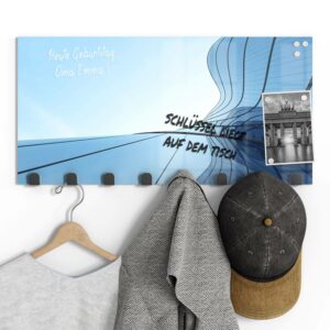Gerade einfarbige oder ruhig gemusterte Garderoben mit Motiv eignen sich wunderbar, um sie gleichzeitig als kleine Pinn- und Notizwand zu nutzen. Mit einem abwischbaren Marker kannst du deinen Lieben Botschaften hinterlassen, wichtige Daten notieren oder dir einfach ein Motto ausdenken, das du je nach Jahreszeit und Anlass erneuerst. Da sich auf der Rückseite eine Metalloberfläche befindet, kannst du die Garderobenpaneele mit starken Magneten (Neodym-Magneten) auch dazu verwenden, hier Fotos und Notizen anzupinnen. Diese Zusatzfunktion ist nicht nur für Familien eine tolle Möglichkeit, begrenzten Wohnraum zu nutzen und den Alltag strukturieren. Egal ob beim Heimkommen oder beim Ausgehen – hier wirst du an alles Wichtige erinnert, was du noch zu erledigen hast.