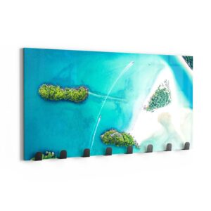 Die Garderobenpaneele bei DEQORI werden aus einem hochwertigen Sicherheitsglas hergestellt, das rückseitig mit einer bedruckten Folie versehen ist. Durch die moderne Drucktechnik ist es möglich, jedes Motiv und Foto in einzigartig guter Qualität abzubilden. Dadurch wirken Fotos dreidimensional und die Farben sind besonders strahlend und brillant. Die Garderobe aus Glas verfügt natürlich über mehrere formschöne Haken, an denen deine Jacken, Mäntel und dein Schirm ihren Platz finden. Die Wandgarderobe mit Edelstahl Details fügt sich gerade in zeitlos eingerichtete Räume gut ein und kann, je nach Motiv, immer passend zur eigenen Dekoration abgestimmt werden. Das moderne Garderobenpaneel wird mit der passenden Wandverankerung geliefert, die dir das schnelle und einfache Anbringen an die Wand ermöglichen und selbst für ungeübte Handwerker kein Problem darstellen. Selbstverständlich sind die Kanten der Glasplatte abgerundet und sorgfältig abgeschliffen. Die Garderobe wird elegant mit einem kleinen Abstand von der Wand angebracht, was sie fast schwerelos erscheinen lässt. Über dem Bereich mit den Garderobenhaken ist das Motiv auch dann noch gut zu erkennen, wenn die Garderobe in Benutzung ist. So ist die Design Wandgarderobe ein tolles Wohnaccessoire, das wie ein Wandbild funktioniert. Gerade für kleine Flure eignet sie sich, um etwas Farbe in die Bude zu bekommen und das Nützliche mit dem Schönen zu verbinden. Die Wandpaneele wird nach deiner Bestellung extra für dich angefertigt und dir in wenigen Tagen zugesandt.