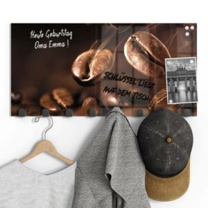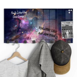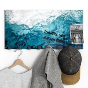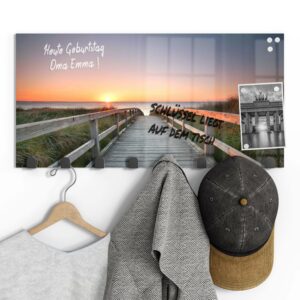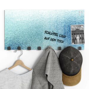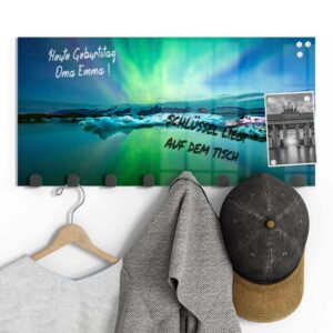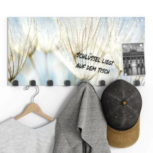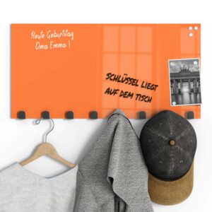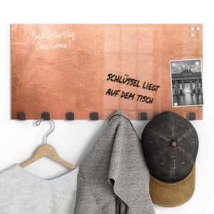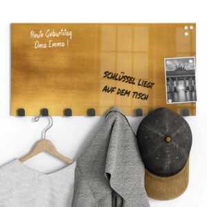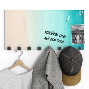 Gerade einfarbige oder ruhig gemusterte Garderoben mit Motiv eignen sich wunderbar, um sie gleichzeitig als kleine Pinn- und Notizwand zu nutzen. Mit einem abwischbaren Marker kannst du deinen Lieben Botschaften hinterlassen, wichtige Daten notieren oder dir einfach ein Motto ausdenken, das du je nach Jahreszeit und Anlass erneuerst. Da sich auf der Rückseite eine Metalloberfläche befindet, kannst du die Garderobenpaneele mit starken Magneten (Neodym-Magneten) auch dazu verwenden, hier Fotos und Notizen anzupinnen. Diese Zusatzfunktion ist nicht nur für Familien eine tolle Möglichkeit, begrenzten Wohnraum zu nutzen und den Alltag strukturieren. Egal ob beim Heimkommen oder beim Ausgehen – hier wirst du an alles Wichtige erinnert, was du noch zu erledigen hast.
