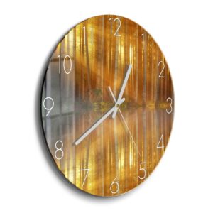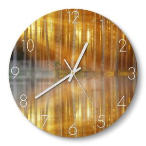 Aktuell im Trend liegst du mit einer Wanduhr in Gold. Im Metalllook bedruckt strahlt deine Wanduhr weithin. Besonders schön wirkt deine Wanduhr in Gold oder deine Glasuhr in Silber zum Beispiel mit stimmungsvollen Bildern des Jugendstil, die bis heute nichts von ihrem Zauber eingebüßt haben. Ebenfalls stilvoll und genau richtig für eine zeitgemäße Einrichtung im skandinavischen Stil sind Wanduhren in Weiß: Diese müssen aber nicht einfarbig gestaltet sein. Vom grafischen und abstrakten Mustern bis hin zu Fotos mit weißem Hintergrund stehen dir bei uns viele verschiedene Vorlagen zur Verfügung. Auf hellem Hintergrund kommen die dunklen Ziffern und Zeiger besonders gut zur Geltung und erleichtern das Ablesen der Uhrzeit.