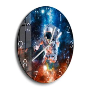 Die Wanduhr aus Glas ist nicht nur äußerst stabil, durch die Verwendung von hochwertigem dekorativen Glas. Sie ist auch dank der glatten Oberfläche leicht zu reinigen und eignet sich damit für eigentlich jeden Wohn- und Arbeitsbereich. Falls du also noch auf der Suche nach der perfekten Dekoration für deine Küche oder Praxis bist, solltest du dich unter unseren Wanduhren einmal umschauen. Die Uhr kommt mit einer passenden Wandbefestigung und wird mit etwas Abstand zur Wand angebracht. Das verleiht ihr eine besonders leichte Optik, da sie fast vor der Wand zu schweben scheint. Verarbeitet wird ein hochwertiges und langlebiges Uhrwerk, dessen Batterien du einfach selbst ersetzen kannst. Somit hast du lange Freude an deiner besonderen Uhr von DEQORI.