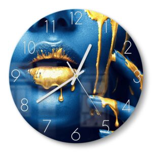 Aktuell im Trend liegst du mit einer Wanduhr in Gold. Im Metalllook bedruckt strahlt deine Wanduhr weithin. Besonders schön wirkt deine Wanduhr in Gold oder deine Glasuhr in Silber zum Beispiel mit stimmungsvollen Bildern des Jugendstil, die bis heute nichts von ihrem Zauber eingebüßt haben. Ebenfalls stilvoll und genau richtig für eine zeitgemäße Einrichtung im skandinavischen Stil sind Wanduhren in Weiß: Diese müssen aber nicht einfarbig gestaltet sein. Vom grafischen und abstrakten Mustern bis hin zu Fotos mit weißem Hintergrund stehen dir bei uns viele verschiedene Vorlagen zur Verfügung. Auf hellem Hintergrund kommen die dunklen Ziffern und Zeiger besonders gut zur Geltung und erleichtern das Ablesen der Uhrzeit.