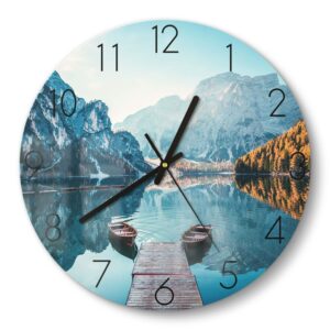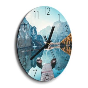 Beliebt sind Wanduhren in rechteckigen Formaten, bei denen sich die Uhr entweder rechts oder links befindet. Diese außergewöhnliche Gestaltung, zum Beispiel für deine Wanduhr im Wohnzimmer, eignet sich für große Motive, die damit einzigartig in Szene gesetzt werden. In unserem Shop DEQORI findest du zum Beispiel Landschaftsmotive im Querformat, die Lust auf einen Wanderausflug oder einen Trip ans Meer machen. Verschiedene Motive kannst du je nach Farbstimmung und deinem Raum auswählen. Dabei muss es nicht immer der beliebte Sonnenuntergang sein: Stimmungsvoll abgestimmt und Ton-in-Ton strahlen Landschaftsfotos Ruhe und Gelassenheit aus und sind damit perfekt geeignet, um mit einer modischen Wanduhr kombiniert zu werden. Fotouhren sind gerade bei Kindern beliebt und ermutigen das Kind, das Lesen der Uhr zu erlernen. Vielleicht bist du noch auf der Suche nach einem schönen Geschenk für ein Kind. Bei DEQORI findest du viele kindgerechte und ansprechende Motive in verschiedenen Farbtönen, sodass die Uhr immer passend zur Kinderzimmereinrichtung gewählt werden kann. Oder du lässt die Uhr von uns mit einem Foto des Lieblingstiers deines Kindes bedrucken.