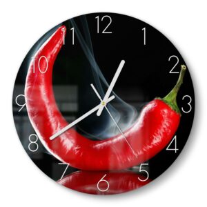 Für die Wanduhr aus Glas stehen dir verschiedene Formate und Größen zur Auswahl, unter denen du frei wählen kannst. Mit einem selbstgewählten Motiv, zum Beispiel einem Bild von dir und deinen Liebsten oder deinem Lieblingsstrand wird jeder Blick auf die Uhr zu einem schönen Moment. Der Klassiker für Wanduhren in der Küche ist eine runde Form, die gerade in Kombination mit Naturmotiven besonders toll zur Geltung kommt. Da die Farben besonders gut durch das Material zur Geltung kommen, wird auch eine kleinere Uhr aus Glas zu einem Blickfänger, der sich zum Aufpeppen von einfarbigen Wänden eignet. Wer es gerne künstlerisch mag, sollte sich unter den grafischen Motiven umschauen. Als Designobjekt bringt deine kunstvoll gestaltete Uhr ein besonderes Flair in dein Zuhause. Vielleicht möchtest du auch eine Wanduhr in Schwarz, zum Beispiel im angesagten Natursteinlook oder mit einem schwarz-weiß Motiv, das durch die glänzende Oberfläche des Glases besonders gut zur Geltung kommt.