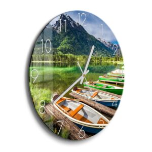 Beliebt sind Wanduhren in rechteckigen Formaten, bei denen sich die Uhr entweder rechts oder links befindet. Diese außergewöhnliche Gestaltung, zum Beispiel für deine Wanduhr im Wohnzimmer, eignet sich für große Motive, die damit einzigartig in Szene gesetzt werden. In unserem Shop DEQORI findest du zum Beispiel Landschaftsmotive im Querformat, die Lust auf einen Wanderausflug oder einen Trip ans Meer machen. Verschiedene Motive kannst du je nach Farbstimmung und deinem Raum auswählen. Dabei muss es nicht immer der beliebte Sonnenuntergang sein: Stimmungsvoll abgestimmt und Ton-in-Ton strahlen Landschaftsfotos Ruhe und Gelassenheit aus und sind damit perfekt geeignet, um mit einer modischen Wanduhr kombiniert zu werden. Fotouhren sind gerade bei Kindern beliebt und ermutigen das Kind, das Lesen der Uhr zu erlernen. Vielleicht bist du noch auf der Suche nach einem schönen Geschenk für ein Kind. Bei DEQORI findest du viele kindgerechte und ansprechende Motive in verschiedenen Farbtönen, sodass die Uhr immer passend zur Kinderzimmereinrichtung gewählt werden kann. Oder du lässt die Uhr von uns mit einem Foto des Lieblingstiers deines Kindes bedrucken.