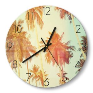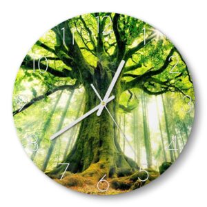 Für die Wanduhr aus Glas stehen dir verschiedene Formate und Größen zur Auswahl, unter denen du frei wählen kannst. Mit einem selbstgewählten Motiv, zum Beispiel einem Bild von dir und deinen Liebsten oder deinem Lieblingsstrand wird jeder Blick auf die Uhr zu einem schönen Moment. Der Klassiker für Wanduhren in der Küche ist eine runde Form, die gerade in Kombination mit Naturmotiven besonders toll zur Geltung kommt. Da die Farben besonders gut durch das Material zur Geltung kommen, wird auch eine kleinere Uhr aus Glas zu einem Blickfänger, der sich zum Aufpeppen von einfarbigen Wänden eignet. Wer es gerne künstlerisch mag, sollte sich unter den grafischen Motiven umschauen. Als Designobjekt bringt deine kunstvoll gestaltete Uhr ein besonderes Flair in dein Zuhause. Vielleicht möchtest du auch eine Wanduhr in Schwarz, zum Beispiel im angesagten Natursteinlook oder mit einem schwarz-weiß Motiv, das durch die glänzende Oberfläche des Glases besonders gut zur Geltung kommt.