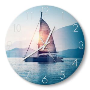 Für die Wanduhr aus Glas stehen dir verschiedene Formate und Größen zur Auswahl, unter denen du frei wählen kannst. Mit einem selbstgewählten Motiv, zum Beispiel einem Bild von dir und deinen Liebsten oder deinem Lieblingsstrand wird jeder Blick auf die Uhr zu einem schönen Moment. Der Klassiker für Wanduhren in der Küche ist eine runde Form, die gerade in Kombination mit Naturmotiven besonders toll zur Geltung kommt. Da die Farben besonders gut durch das Material zur Geltung kommen, wird auch eine kleinere Uhr aus Glas zu einem Blickfänger, der sich zum Aufpeppen von einfarbigen Wänden eignet. Wer es gerne künstlerisch mag, sollte sich unter den grafischen Motiven umschauen. Als Designobjekt bringt deine kunstvoll gestaltete Uhr ein besonderes Flair in dein Zuhause. Vielleicht möchtest du auch eine Wanduhr in Schwarz, zum Beispiel im angesagten Natursteinlook oder mit einem schwarz-weiß Motiv, das durch die glänzende Oberfläche des Glases besonders gut zur Geltung kommt.